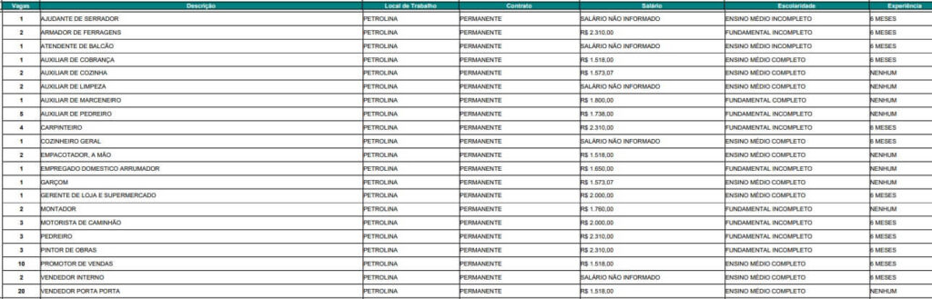 A Agência de Trabalho de Pernambuco divulgou vagas de emprego para esta quinta-feira (16/10), para Petrolina e demais cidades do estado.